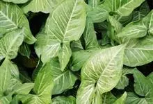合果芋是天南星科,合果芋属多年生常绿草本植物,合果芋的茎节具气生根,攀附他物生长。叶片呈两型性,箭形或戟形;叶基裂片两侧常着生小型耳状叶片。佛焰苞浅绿或黄色。合果芋一般不易开花。…全部>>