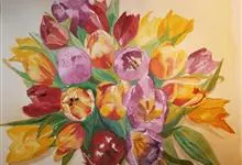 郁金香,是百合科郁金香属多年生球根花卉,又名草麝香、旱荷花、洋荷花、洋水仙、郁香等。郁金香具鳞茎。叶条状披针形至卵状披针形。花单朵顶生,大型而艳丽;花被片红色或杂有白色和黄色,有时为白色或黄色。…全部>>