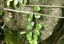 伏石蕨是水龙骨科、伏石蕨属小型附生蕨类植物。根状茎细长横走,淡绿色,疏生鳞片粗筛孔,两侧不规则分叉。叶远生,二型;叶片近球圆形或卵圆形,基部圆形或阔楔形,全缘;能育叶狭缩成舌状或狭披针形,叶脉网状,…全部>>