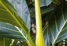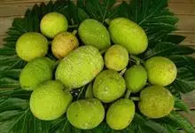 面包树 Fosberg)是桑科波罗蜜属植物。叶大,成熟之叶羽状分裂,表面深绿色,背面浅绿色;穗状花序单生叶腋,雄花序长圆筒形至长椭圆形或棒状;聚花果倒卵圆形或近球形;花期为3~5月,果期为7~10月。…全部>>