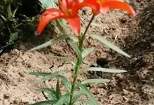 山丹是百合科百合属的多年生草本植物。鳞茎卵形或圆锥形,鳞片长圆形或长卵形,白色;叶散生茎中部,线形,边缘有乳头状突起;花单生或数朵成总状花序,花鲜红色,常无斑点,花被片反卷,…全部>>