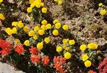 万寿菊是菊科万寿菊属一年生草本植物,别名孔雀菊、缎子花、臭菊花、西番菊、红黄草、小万寿菊、臭芙蓉、孔雀草。万寿菊茎近基部分枝。叶羽状分裂,长5-10厘米,宽4-8厘米,裂片长椭圆形或披针形,具锐齿,…全部>>