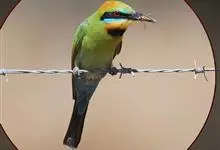 蓝颊蜂虎:是蜂虎科、蜂虎属的鸟类,共有2个亚种。体长27-33厘米,翼展46-49厘米,体重38-50克。嘴形细长而下弯,先端尖,…全部>>