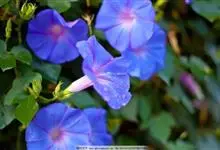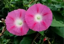 圆叶牵牛 Roth)是旋花科,番薯属一年生缠绕草本植物,叶片圆心形或宽卵状心形,基部圆,心形,顶端锐尖、骤尖或渐尖,两面疏或密被刚伏毛;花腋生,着生于花序梗顶端成伞形聚伞花序,花序梗比叶柄短或近等长,…全部>>