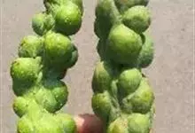 抱子甘蓝是十字花科芸薹属植物,二年生草本,被粉霜。茎粗壮,直立,高0.5-1米,茎的全部叶腋有大的柔软叶芽,直径2-3厘米。基生叶及下部茎生叶长圆状倒卵形至圆形,长和宽达30厘米。。…全部>>