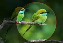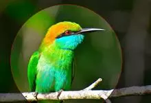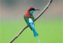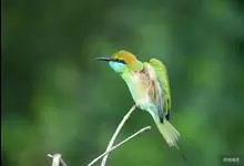 绿喉蜂虎是佛法僧目、蜂虎科的小型鸟类,共有9个亚种。身长22-25厘米,翼展29-30厘米,体重15-20克。喉绿色,额部、头顶至上背为锈红色,其余上体均为亮绿色。中央尾羽延长且端段狭细,…全部>>