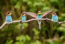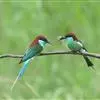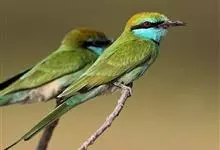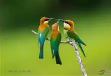 蓝颊蜂虎:是蜂虎科、蜂虎属的鸟类,共有2个亚种。体长27-33厘米,翼展46-49厘米,体重38-50克。嘴形细长而下弯,先端尖,…全部>>