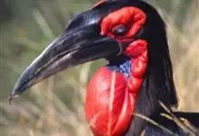 红脸地犀鸟是地栖犀鸟的一种,是非洲常见的地犀鸟。由于外形奇特,是著名的珍稀玩赏鸟,全国部分动物园和鸟园有饲养展出。它们生活在非洲南部,大部分时间在地面上活动。雄性地犀鸟体长可达129厘米,…全部>>
