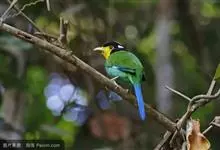 三宝鸟佛法僧科三宝鸟属的鸟类,为佛法僧目三宝鸟属下的一种中小型攀禽,共有10个亚种,体长26-29厘米,体重107-194克。通体蓝绿色,头和翅较暗,呈黑褐色,初级飞羽基部具淡蓝色斑,飞翔时甚明显。…全部>>