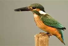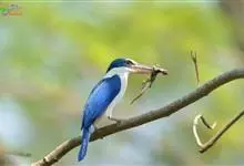 蓝翠鸟:体长17-19厘米,翼展25-29厘米,体重40克。体羽艳丽而具光辉,头、背羽蓝色有光泽,胸腹部是美丽明亮的桔红色或红棕色,翅膀上夹有一些黑色,后颈和喉部有白斑,尾下尖部是斑驳的灰黑色,腿和…全部>>