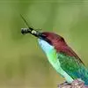 蓝颊蜂虎:是蜂虎科、蜂虎属的鸟类,共有2个亚种。体长27-33厘米,翼展46-49厘米,体重38-50克。嘴形细长而下弯,先端尖,…全部>>