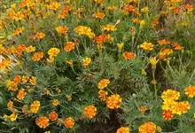 万寿菊是菊科万寿菊属一年生草本植物,别名孔雀菊、缎子花、臭菊花、西番菊、红黄草、小万寿菊、臭芙蓉、孔雀草。万寿菊茎近基部分枝。叶羽状分裂,长5-10厘米,宽4-8厘米,裂片长椭圆形或披针形,具锐齿,…全部>>