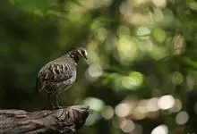 红腹角雉属于鸡形目雉科,雄鸟体羽及两翅主要为深栗红色,满布具黑缘的灰色眼状斑,下体灰斑大而色浅。雌鸟上体灰褐色,下体淡黄色,杂以黑、棕、白斑。全部>>