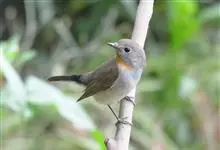 棕胸蓝姬鹟:属小型鸣禽,体长10-13厘米,体重6-10克,是一种体型很小的灰蓝及棕色鹟,雌雄羽色不同,雄鸟羽色艳丽,雌鸟羽色暗淡。雄鸟上体深蓝色,胸橙黄色,下腹灰白色。亚成鸟具褐色斑驳。…全部>>