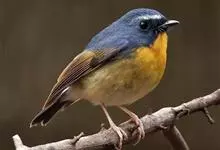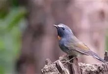 棕胸蓝姬鹟:属小型鸣禽,体长10-13厘米,体重6-10克,是一种体型很小的灰蓝及棕色鹟,雌雄羽色不同,雄鸟羽色艳丽,雌鸟羽色暗淡。雄鸟上体深蓝色,胸橙黄色,下腹灰白色。亚成鸟具褐色斑驳。…全部>>