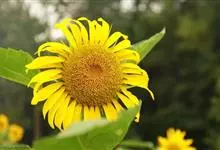 向日葵:是桔梗目、菊科、向日葵属的植物。因花序随太阳转动而得名。是一年生高大草本植物。茎粗壮,高1-3米,不分枝或有时上部分枝,被白色粗硬毛。叶互生,卵状心形或卵形,顶端急尖或渐尖,基生3出脉,…全部>>
