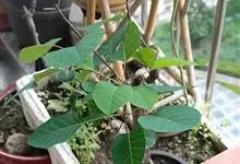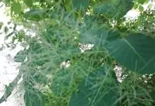 粉背黄栌叶卵圆形,较大,长3.5-10厘米,宽2.5-7.5厘米,无毛,但叶背显著被白粉;叶柄较长,1.5-3.3厘米,…全部>>