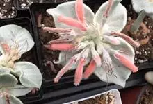 月宴 H.E.Moore) [1-2] 又名断崖女王,是隶属于苦苣苔科大岩桐属 石生植物、多肉植物。具地下块茎,叶面被有稠密、质感似天鹅绒的大量白色绒毛;生于枝顶端,数朵群聚开放,花筒较细,长3至…全部>>
