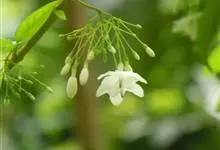 锡兰水梅 Wrightia antidysenterica,是夹竹桃科倒吊笔属的常绿灌木。产于东南亚、斯里兰卡。在泰国,人们会采摘它的花来做成花串挂车上或者拜佛。全部>>