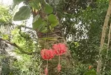 吊灯扶桑 Hook. f.)为锦葵科木槿属的常绿灌木。高达3米;小枝常下垂;叶椭圆形或长圆形,先端尖或短渐尖,基部楔形;花梗细,无毛或具纤毛,中部具节;蒴果长圆柱形;花期全年。因似灯笼高挂,…全部>>