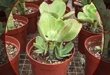 唐印为景天科伽蓝菜属的多年生肉质草本植物。植株中型,株高50厘米,宽20厘米,多分枝;叶片肉质,对生,卵形,全缘,先端钝圆,叶片淡绿色至灰绿色,表面被有厚厚的白粉,光照充足时,叶缘呈红色;圆锥花序,…全部>>