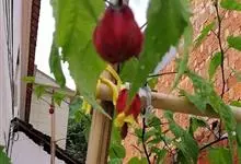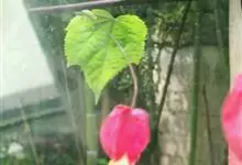红萼苘麻是锦葵科、苘麻属常绿软木质灌木,叶绿色,长5-10厘米,心形,叶端尖,叶缘有钝锯齿,有时分裂,有细细的叶柄;叶互生,掌状叶脉;花单生于叶腋,具长梗,下垂;花萼红色,半套着大约4厘米长的花瓣,…全部>>