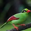 蓝绿鹊:中型鸟类,共有5个亚种。体长36-38厘米。尾长,嘴、脚红色。通体羽色主要为草绿色,宽阔的黑色贯眼纹向后延伸到后颈,在绿色的头侧极为醒目。两翅栗红色,内侧飞羽具黑色次端斑和白色尖端。尾绿色,…全部>>