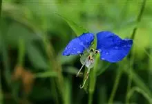 鸭跖草,是鸭跖草科鸭跖草属的—年生披散草本植物。鸭跖草的茎匍匐生根,多分枝;叶披针形或卵状披针形;萼片膜质,花瓣深蓝色;蒴果椭圆形;种子棕黄色,一端平截,腹面平,有不规则窝孔;花期7-9月,…全部>>