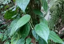 假蒟是胡椒科胡椒属多年生草本植物。小枝近直立,无毛或幼时被极细的粉状短柔毛;叶近膜质,有细腺点,下部的阔卵形或近圆形;花单性,雌雄异株,聚集成与叶对生的穗状花序;总花梗与花序等长或略短,…全部>>