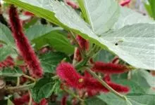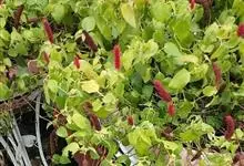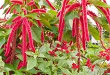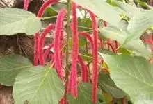 红穗铁苋菜:为大戟科、铁苋菜属植物,灌木,高0.5-3米。嫩枝被灰色短绒毛,毛逐渐脱落,小枝无毛。 花序色泽鲜艳,葇荑花序下垂,如狐狸尾状,雌花近卵形,长约0.8毫米,顶端急尖,具短毛;子房近球形,…全部>>