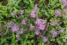 紫堇,罂粟科紫堇属一年生草本植物,高50厘米。主根细长;茎分枝,花枝常与叶对生;基生叶具长柄,叶倒卵圆形;总状花序花冠粉红或紫红色,外花瓣较宽;蒴果线形下垂;种子密被环状小凹点;花期3-4月,…全部>>
