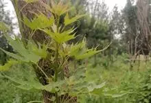 元宝槭为无患子科槭属落叶乔木,高达10米。叶长5—12厘米,宽8—12厘米,裂片三角状卵形,基部平截,稀微心形,幼叶下面脉腋具簇生毛,掌状;叶柄长3—13厘米。伞房花序顶生;雄花与两性花同株。…全部>>