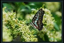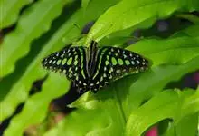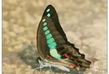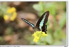 青带凤蝶Graphium sarpedon ,又名青凤蝶,是最普遍的中型凤蝶,飞行速度很快。青带凤蝶的翅膀中央有许多浅蓝色的斑点,很整齐地排列成一条直线。这些斑点由上而下逐渐变大,就像一条青色的带子。全部>>