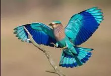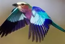 棕胸佛法僧是佛法僧科佛法僧属中型鸟类,体长32~35厘米。黑色的嘴细而下弯。头顶暗蓝色,喉、上背及部分飞羽淡紫;上胸葡萄紫色,具蓝色中央纹,下胸葡萄褐色,腹和尾下覆羽淡蓝色。腰蓝紫色,尾上覆羽辉蓝色。…全部>>