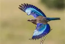 三宝鸟,是佛法僧目佛法僧科三宝鸟属中小型攀禽。成鸟通体为富有光泽的墨蓝绿色,头大而头顶扁平;头部色深近紫黑色,上体至尾泛有铜绿光泽;两翼有幽蓝金属光,初级飞羽黑褐色;羽基淡石青色,形成大块淡蓝,…全部>>