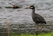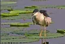 夜鹭是中型涉禽,体长46-60厘米。体较粗胖,颈较短;嘴尖细,微向下曲,黑色;胫裸出部分较少,脚和趾黄色;头顶至背黑绿色而具金属光泽;上体余部灰色;下体白色;枕部披有2-3枚长带状白色饰羽,下垂至背上,…全部>>