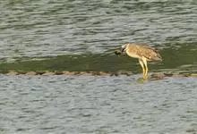 紫背苇鳽是鹭科、苇鳽属动物,为涉禽,体长约33厘米。头顶黑色,后头至尾上覆羽暗栗褐色;翅上覆羽橄榄黄色;下体浅棕黄色。多生活于水库和山脚边的稻田、芦苇丛、滩涂及沼泽草地,在西藏见于海拔2300米的农田,…全部>>