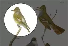 极北柳莺:体长11-13厘米,体小偏灰橄榄色,具明显的黄白色长眉纹,眼先及过眼纹近黑。上体概呈灰橄榄绿色;具甚浅的白色翼斑,大覆羽先端黄白色,形成一道翅上翼斑;中覆羽羽尖成第二道模糊的翼斑;下体白色…全部>>