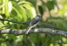 灰山椒鸟:体长18-20厘米。上体灰色或石板灰色,两翅和尾黑色,翅上具斜行白色翼斑,外侧尾羽先端白色。前额、头顶前部、颈侧和下体均白色,具黑色贯眼纹。雄鸟头顶后部至后颈黑色,雌鸟头顶后部和上体均为灰色。…全部>>