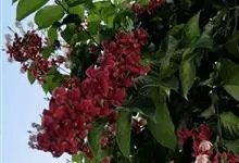 千果榄仁是使君子科诃子属植物,常绿乔木,高可达35米,小枝圆柱状,叶对生,厚纸质;叶片长椭圆形,侧脉两面明显,叶柄较粗,大型圆锥花序,顶生或腋生,花极小而数,两性,红色,小苞片三角形,宿存;萼筒杯状…全部>>