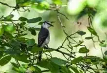 灰山椒鸟:体长18-20厘米。上体灰色或石板灰色,两翅和尾黑色,翅上具斜行白色翼斑,外侧尾羽先端白色。前额、头顶前部、颈侧和下体均白色,具黑色贯眼纹。雄鸟头顶后部至后颈黑色,雌鸟头顶后部和上体均为灰色。…全部>>