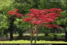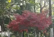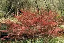 红枫,园艺种,槭树科槭属落叶小乔木,高5~8 m;树冠伞形,枝条开张,细弱。单叶对生,近圆形,薄纸质,掌状7~9深裂,裂深常为全叶片的1/2~1/3,基部心形,裂片卵状长椭圆形至披针形,先端尖,…全部>>