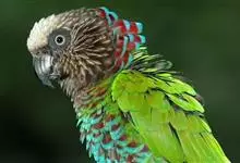 鹰头鹦鹉:鹰头鹦鹉体长35厘米,体重190-277克。额头和顶冠具柔和的白色,眼先深褐色,枕部和头部两侧有棕色羽毛,并具有柔软的白色条纹, 后颈有长长的暗红色羽毛并镶有蓝边,有2个亚种,是典型的攀禽,…全部>>