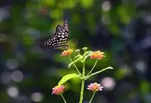 青带凤蝶Graphium sarpedon ,又名青凤蝶,是最普遍的中型凤蝶,飞行速度很快。青带凤蝶的翅膀中央有许多浅蓝色的斑点,很整齐地排列成一条直线。这些斑点由上而下逐渐变大,就像一条青色的带子。全部>>