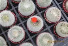 白雪光为南国玉属多年生肉质植物。茎球形或稍扁圆形,高约10厘米左右,单生,直径为6至10厘米,有小疣状突起,呈螺旋状排列,球体密生3至5毫米的放射形白刺,中心刺淡黄色。花顶生,漏斗状,绯红色,花从白…全部>>