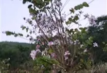 洋紫荆:落叶乔木;树皮暗褐色,近光滑;幼嫩部分常被灰色短柔毛;枝广展,硬而稍呈之字曲折,无毛。叶近革质,广卵形至近圆形,宽度常超过于长度,先端2裂达叶长的1/3,裂片阔,钝头或圆,两面无毛或下面略被…全部>>