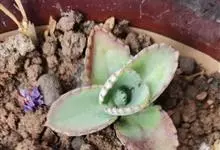 棒叶落地生根是景天科、落地生根属植物。茎直立、粉褐色。叶圆棒形,上表面有沟、粉色,有红褐斑。叶片交互对生,交叉排列成十字形。叶端锯齿上长有很小的幼株、落地后即可生根成活。原产非洲马达加斯加。…全部>>