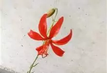 山丹是百合科百合属的多年生草本植物。鳞茎卵形或圆锥形,鳞片长圆形或长卵形,白色;叶散生茎中部,线形,边缘有乳头状突起;花单生或数朵成总状花序,花鲜红色,常无斑点,花被片反卷,…全部>>