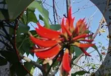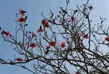 刺桐,是豆科刺桐属乔木植物。树皮灰褐色;分枝有圆锥形黑色皮刺;叶柄无毛,无刺;花密集,成对着生;花梗被茸毛,花冠红色;果实为圆柱形,微弯曲;花期3月;果期8月。刺桐因枝干间有圆锥形棘刺,故名。…全部>>