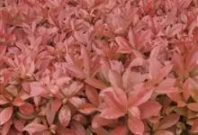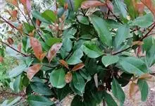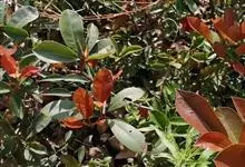 红叶石楠 是蔷薇科,石楠属杂交种,为常绿小乔木或灌木,乔木高可达5米、灌木高可达2米。叶片革质,长圆形至倒卵状、披针形,叶端渐尖,叶基楔形,叶缘有带腺的锯齿,花多而密,复伞房花序,花白色,梨果黄红色,…全部>>